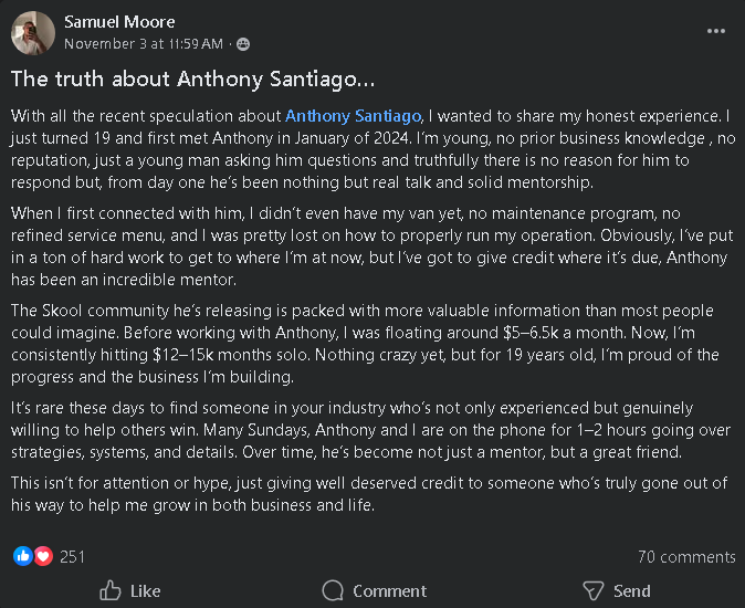 Real results from real detailers inside Anthony’s community. Here are real messages from detailers who’ve worked with Anthony, learned from him, and watched their business grow because of his guidance.